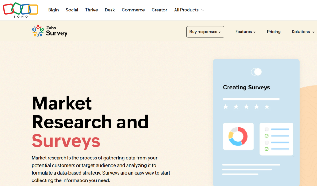 Zoho Survey is a cloud-based survey tool designed for businesses looking to collect structured customer feedback. With over 25 question types, multilingual support, and customizable templates, Zoho Survey caters to various industries, including healthcare, education, and retail.